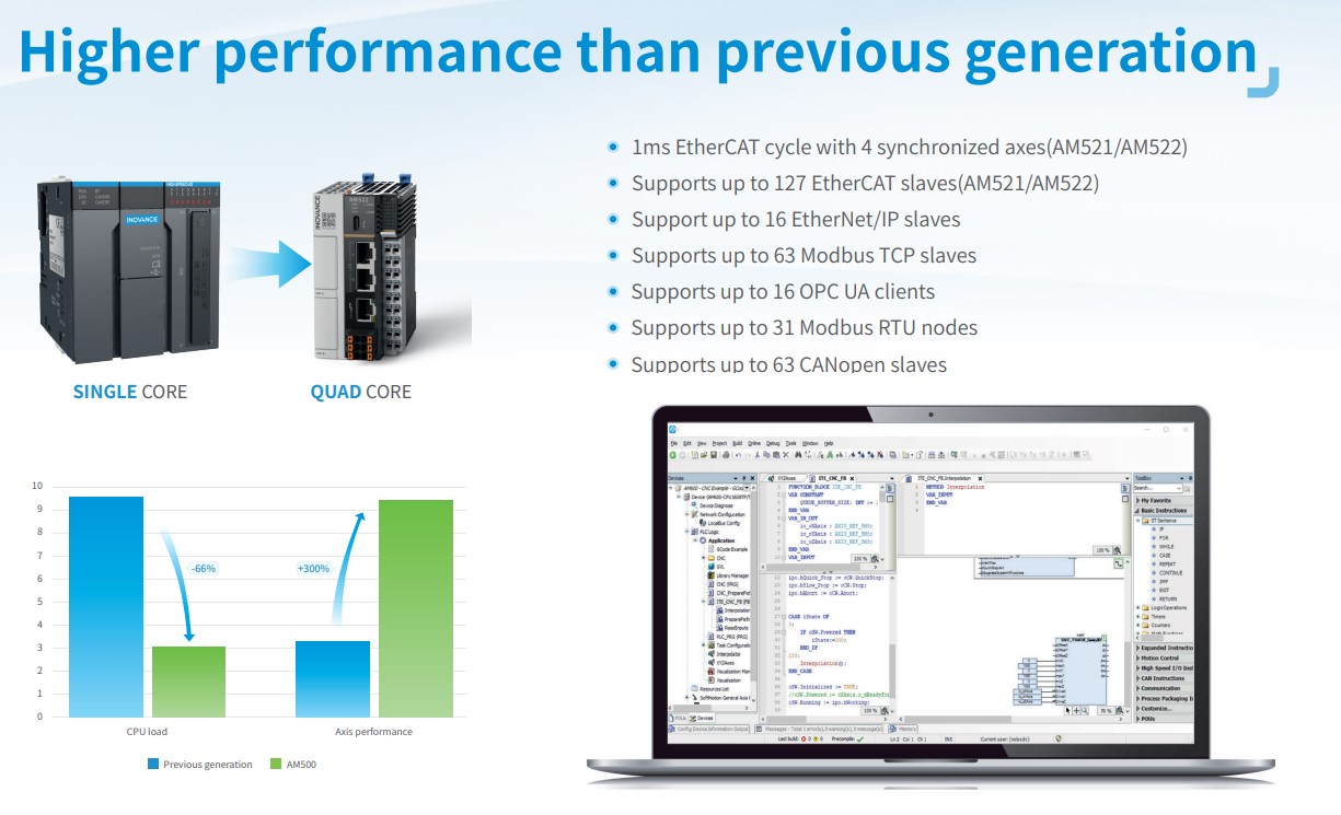 ■ Compact footprint ■ PLCopen compliant axis control ■ EtherCAT real-time and multiprotocol ■ Quad-core processor ■ IEC 61131-3 compliant CODESYS software